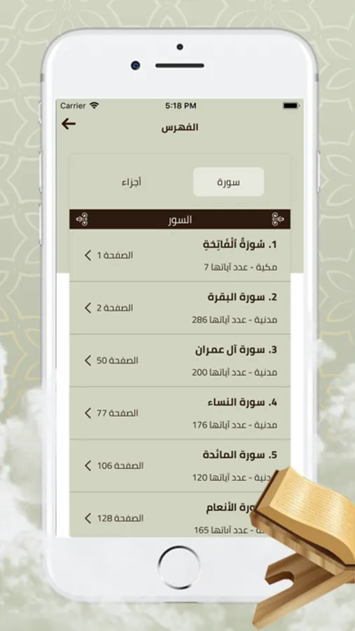 القران الكريم كاملاً وهو مطابق تماماً للمصحف الورقي وبخط واضح و لون خلفية الصفحات مريح للعين مع امكانية تغيير خلفية الصفحة .