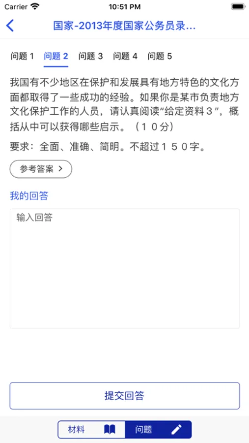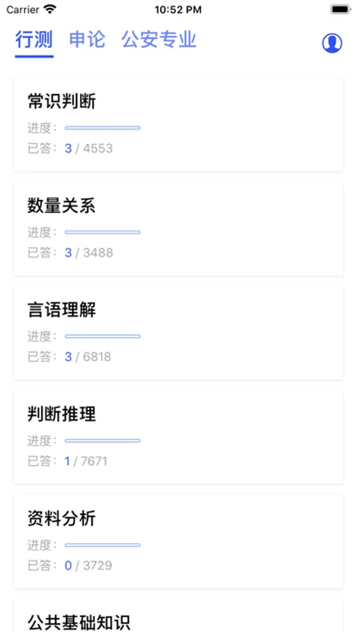本APP包含国考、省考真题库,大量行政能力测试、申论、公安专业等免费题目