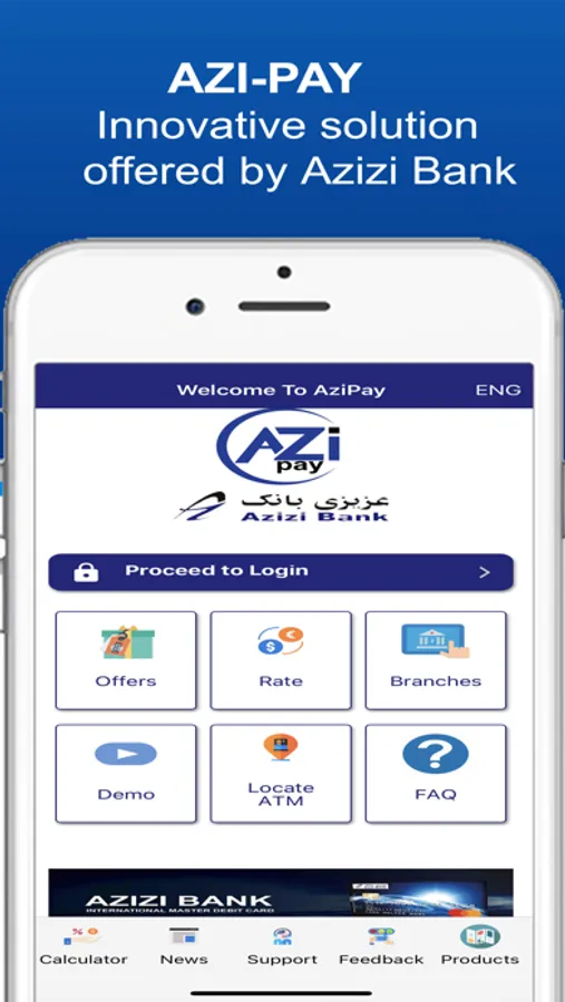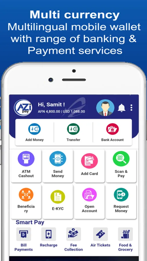 Azizi Bank continues to redefine the way banking is done in Afghanistan. With strong technology-driven solutions Bank is continuously bringing the new services which ride on the mantra of convenience and security. Azizi Bank is proud to launch the first mobile-based wallet solution in the country with a brand name AZI-PAY. AZIPAY is AZIZI Bank's mobile wallet on your smartphone. It is a prepaid wallet which can be used to transfer money to other wallet users, load money from bank accounts, make merchant payments, Cash Out from ATMs, make your bank Account Inquiries, make bill payments, and request money anytime, anywhere.
