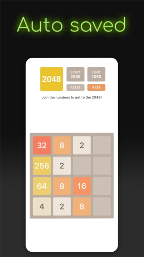 With simple gameplay, you just swipe to move the tiles. When 2 cells have the same number they combine and make a double number. You win when you create the number 2048.