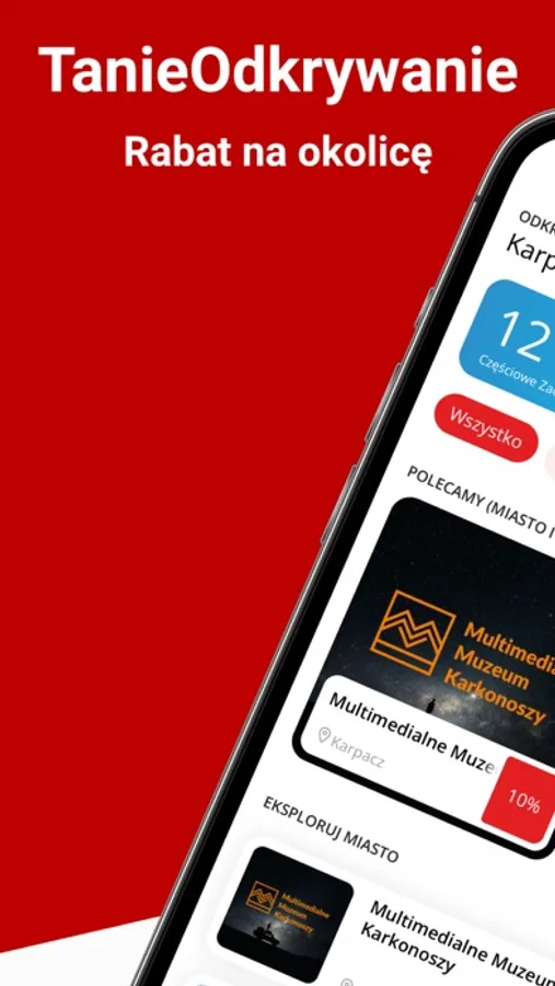 Darmowa aplikacja pomoże Ci zaoszczędzić czas oraz pieniądze oraz zaplanować każdy dzień Twojego urlopu w zależności od Twoich preferencji. Najlepsze atrakcje turystyczne, restauracje, a nawet dojazd do wybranego miejsca, to wszystko znajduje się w ogromnej bazie TanieOdkrywanie.pl. Aplikacja to po prostu „RABAT NA OKOLICĘ”. Pozwól, żeby Twój smartphone stał się wirtualnym przewodnikiem, który zaprowadzi Cię w najciekawsze miejsca znacznie taniej niż ceny regularne. W celu najwygodniejszego korzystania z oprogramowania wskazana jest włączona funkcja lokalizacji, dzięki czemu TanieOdkrywanie.pl zaprowadzi Cię najwygodniejszą drogą do celu.