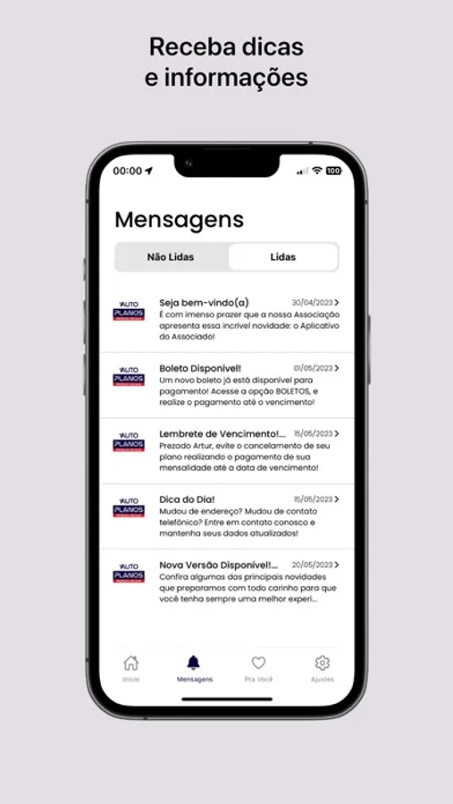 Com o Auto Planos você poderá visualizar suas Filiações, Dados de seu Veículo, Plano, Boletos, Eventos, receber dicas e informações, consultar seu Regulamento Associativo e ainda solicitar ajuda sempre que precisar! Tudo isso ao alcance de um toque!