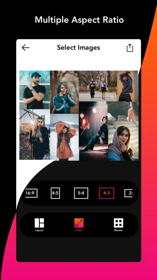 2) Aspect Ratios : Users can select any aspect ratio of the image from 7 different options.