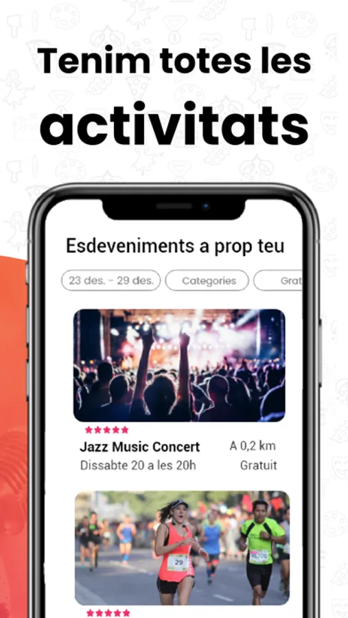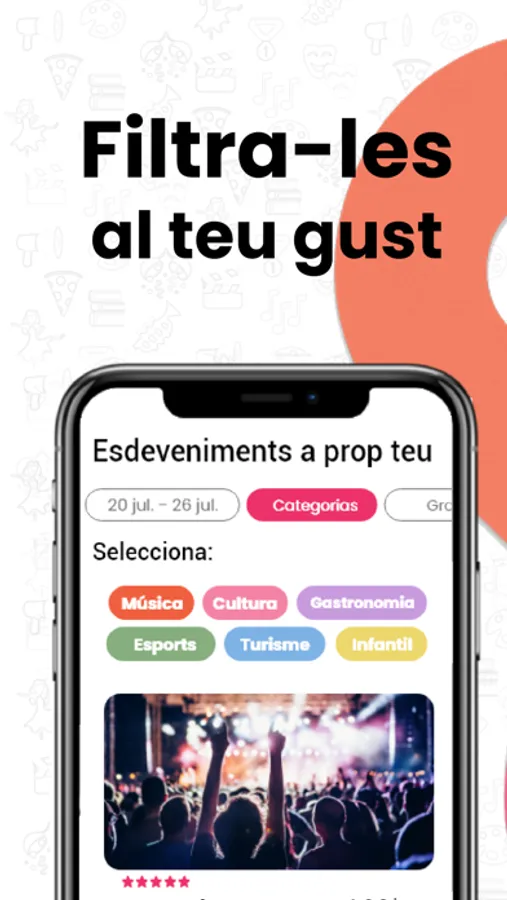 *Filtra les activitats segons el que més et vingui de gust (ex. música, cultura, gastronomia, activitats infantils, esports...)