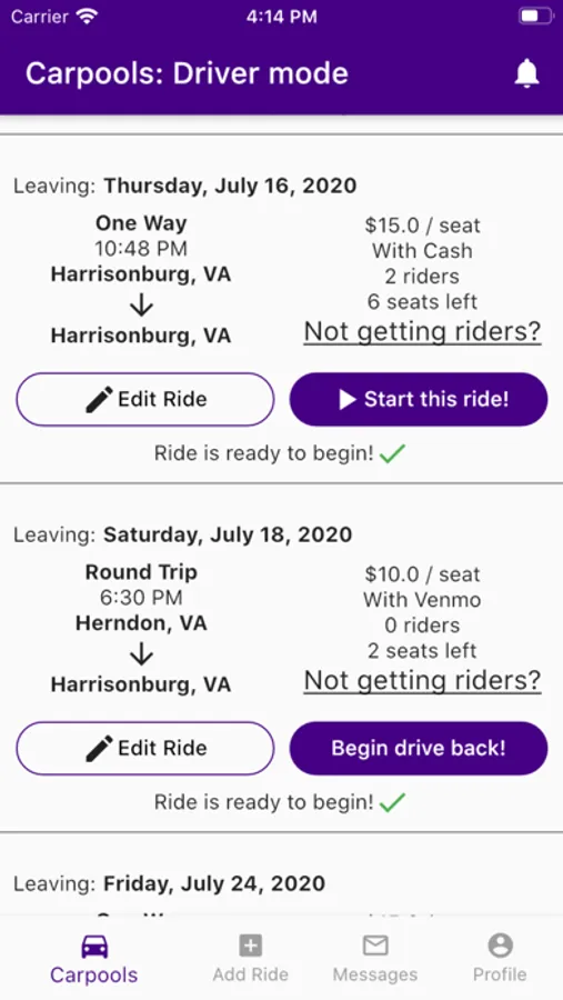 Our purpose is to provide college students with safe, reliable, and affordable transportation options. You set your own fare per seat. Going home for the weekend? Why not make some money? Simply schedule your trip, set how much money per rider you would like to charge, and then go to your destination. Go schedule your ride today!