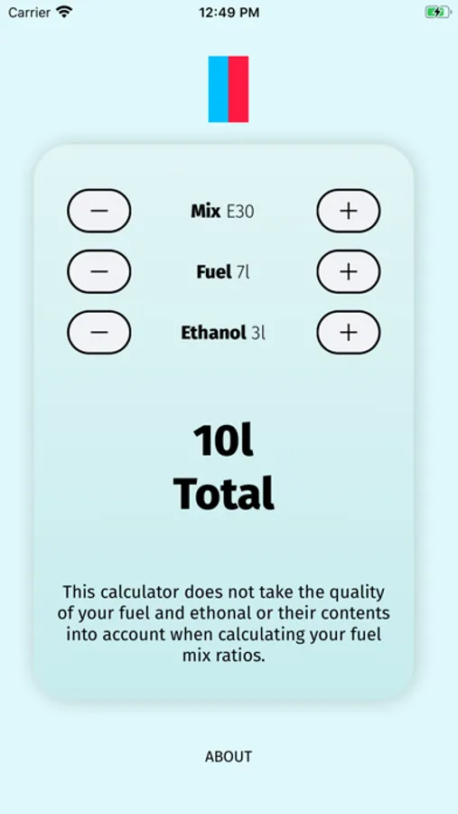 Whether you have poured in fuel and want to know how much ethanol you should mix or the other way round you can use e-thirty to find out how much fuel or ethanol you should put in for your ideal mix of E30, E85, etc.