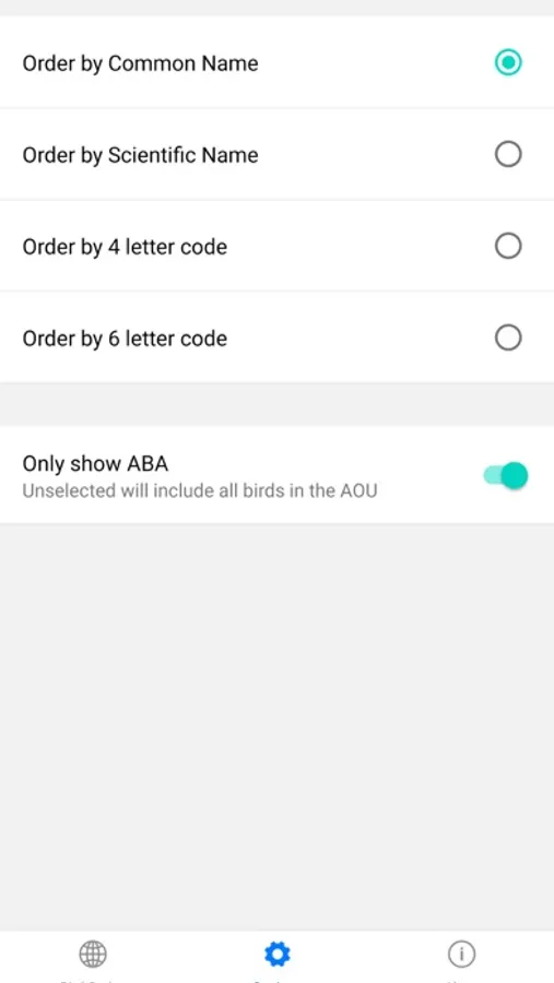 * Toggle between viewing a list of birds included in the AOU or the ABA