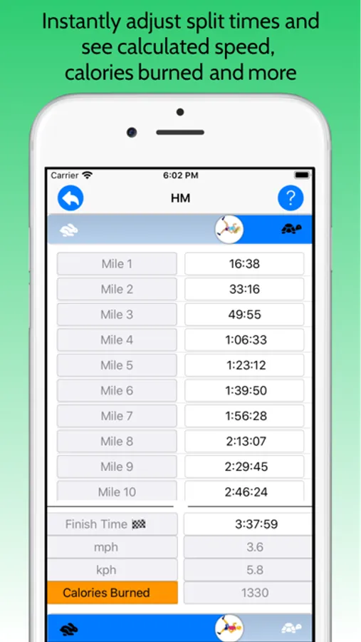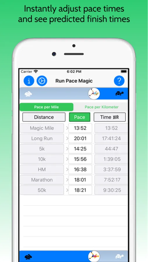 Slide the runner to change your pace and instantly see your predicted finish times for all distances.
