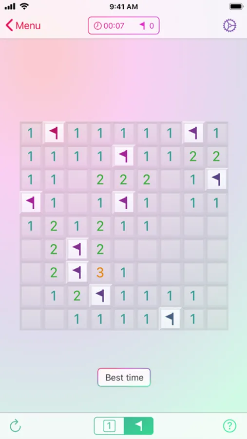 Every board is solvable, but not every board is easy. That's why we added a hint system that uses the power of the Minesweeper AI to show you exactly which part of the board is solvable next.