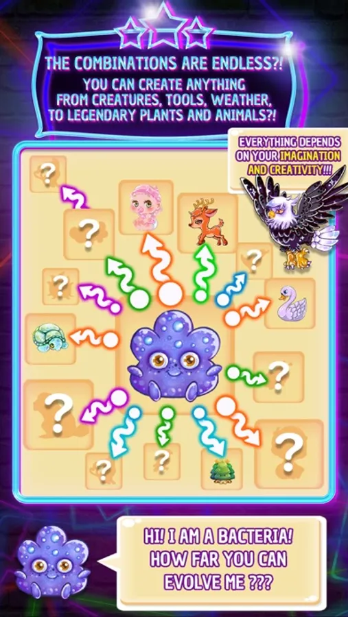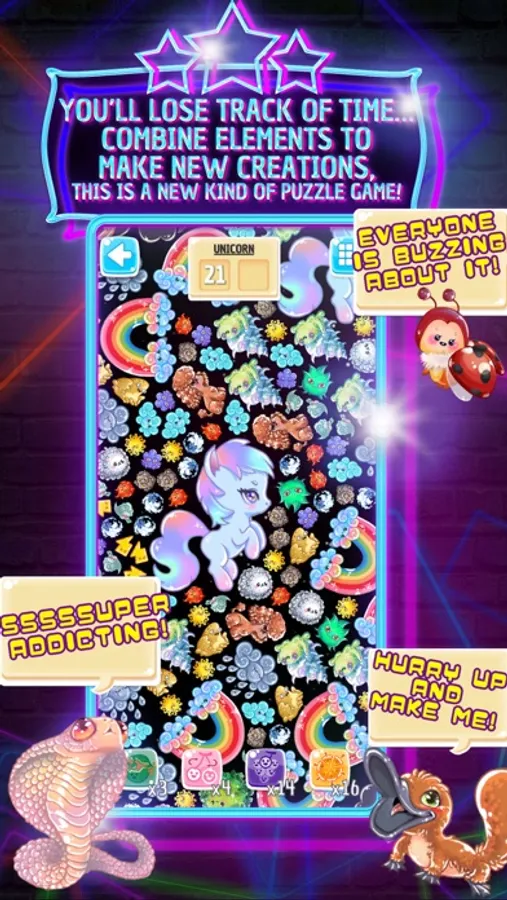 You start out with just a few basic elements and with them you can combine, connect, create, and then recombine to make anything you can think of ;) And if you get stuck there is always a tasty treat waiting to give you a little boost.