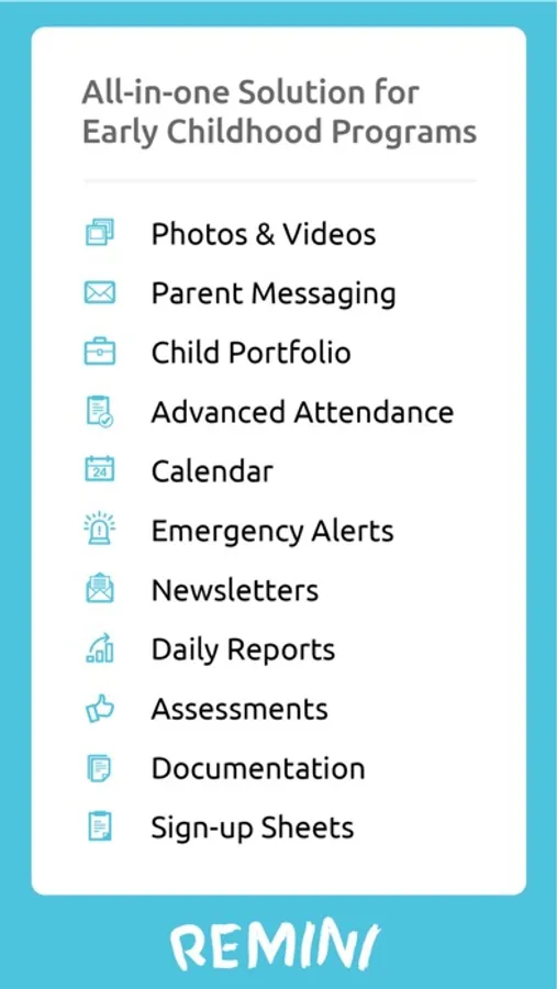 האפליקציה מאפשרת להעלות תכנים (קבצים/וידאו /תמונות/ טקסט) לכל המעון, לכל כיתה ולכל ילד בנפרד.