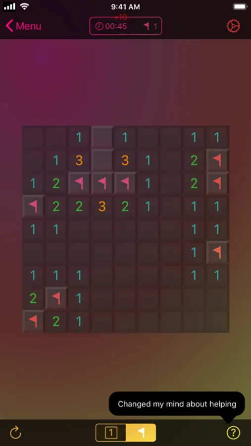 Click on a mine due to a 50/50 guess? No problem! Simply click the Undo popover and keep playing until the next 50/50 guess.