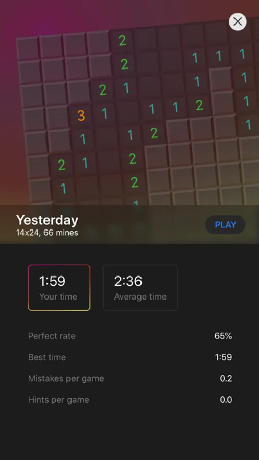 The main stat tracked in Mineswifter is the perfect game, which is a board completed without mistakes or hints. Don't expect this to happen very often.