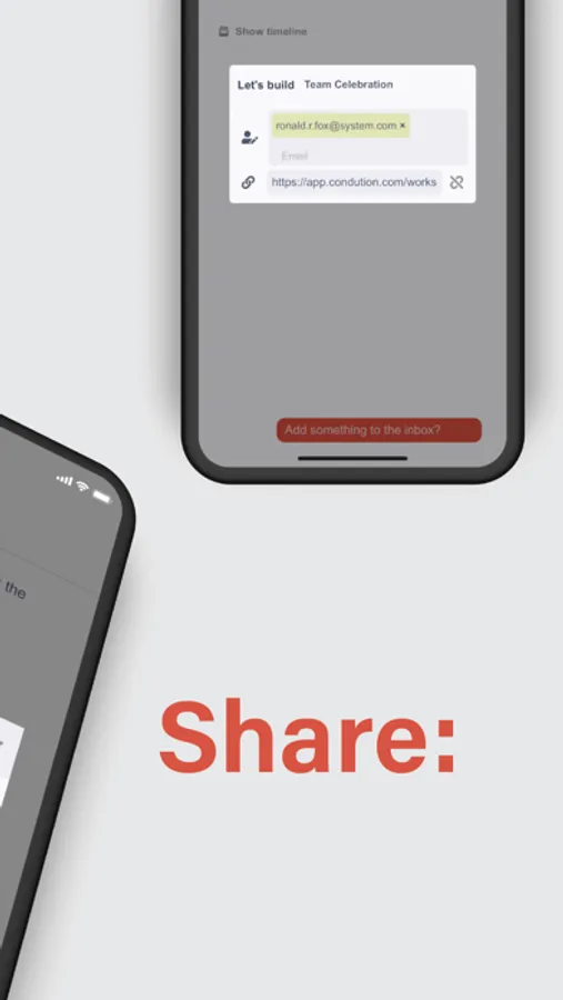 create and share "workspaces" by tapping on the "personal workspace" badge found on the upcoming view. These workspaces are collaborative Condution views in which everyone — regardless if they have an account — could collaborate on Condution!