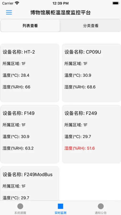 博物馆展柜温湿度监控平台 Screenshots