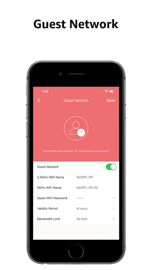 * Securely share your network with guests by Guest Network feature.