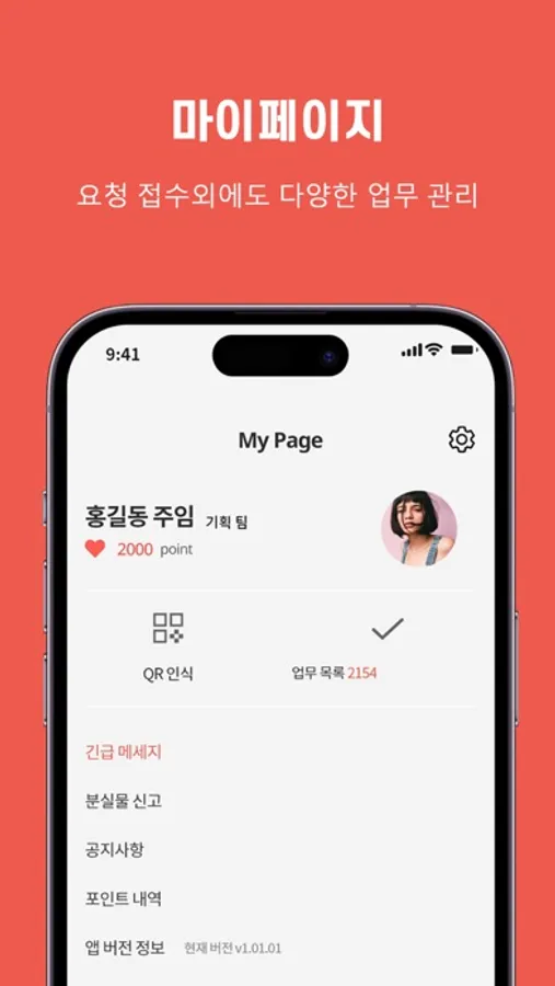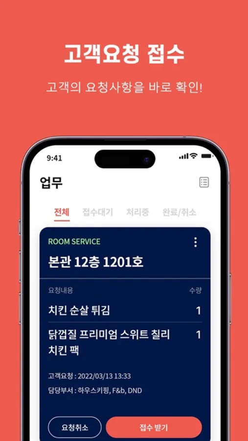 객실과 시설의 파손이나 문제점을 즉시 보고!