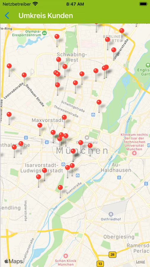 Ihr aktueller Termin fällt aus? - Die Umkreissuche zeigt Ihnen in der Umkreissuche Kunden, die Sie in der gewonnenen Zeit besuchen können.