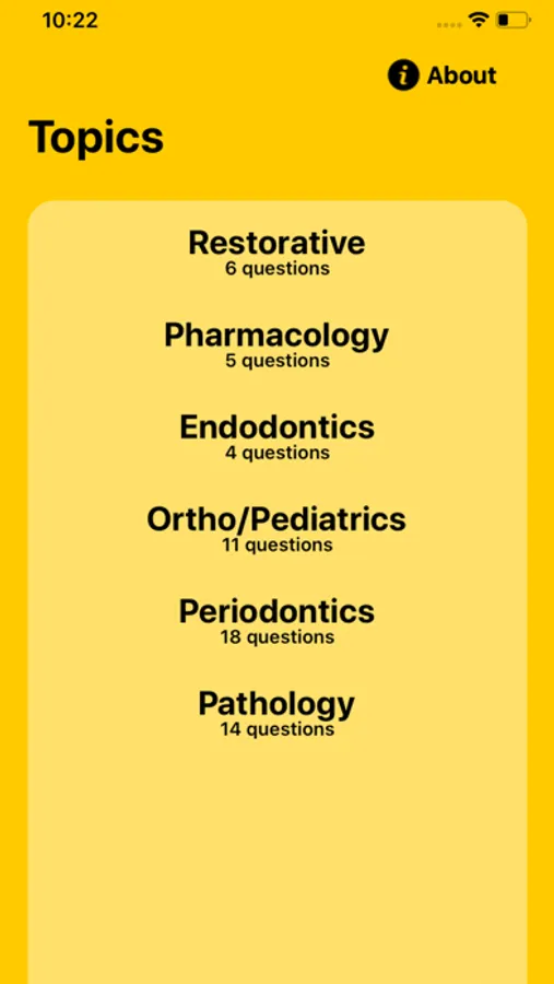 High yield questions are available covering the following topics : restorative, pharmacology, endodontics, orthodontics, pedodontics, periodontics, and pathology.