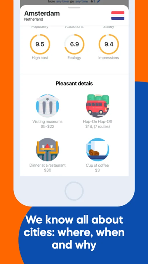 Search as you like: specific dates or periods, cities or countries, and we will show you the best deals.