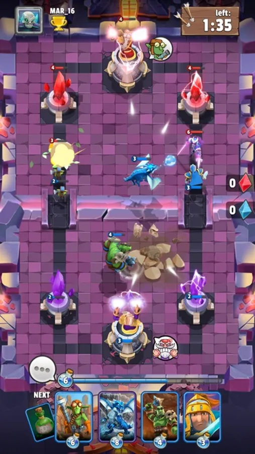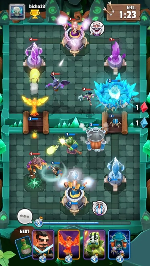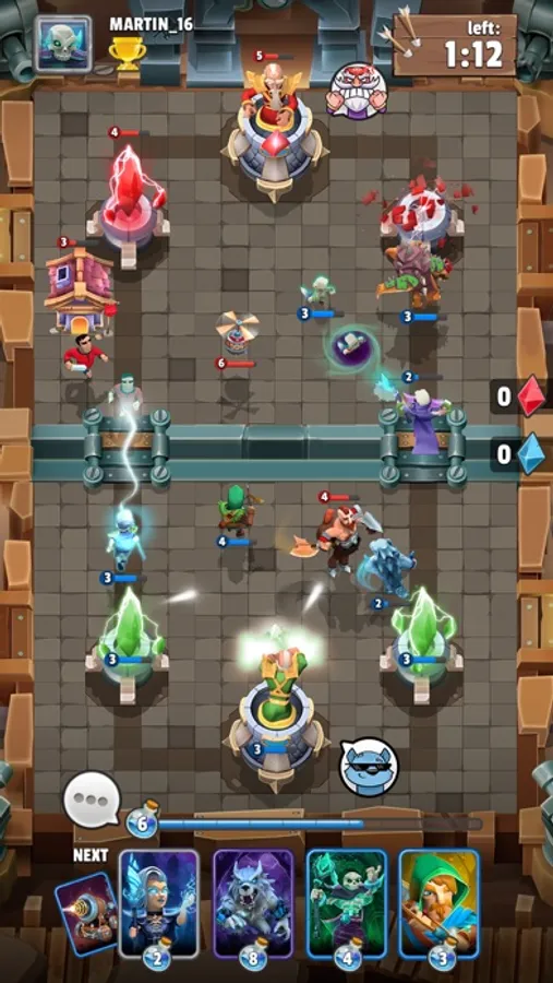 The main Wizard tower, two crystals towers and some battle troops are the only defenses you have to clash with your enemies and establish control over the Arena Royale. Deploy your battle troops and cast your spells to defeat enemy battle forces!