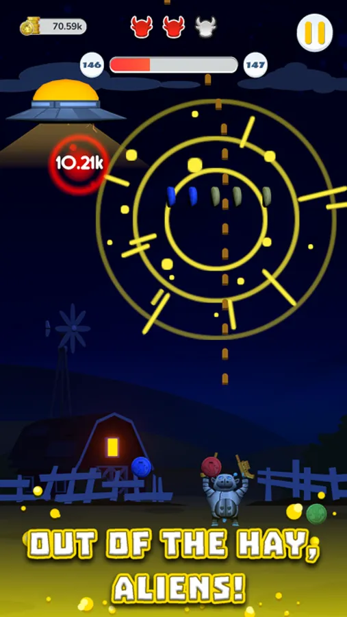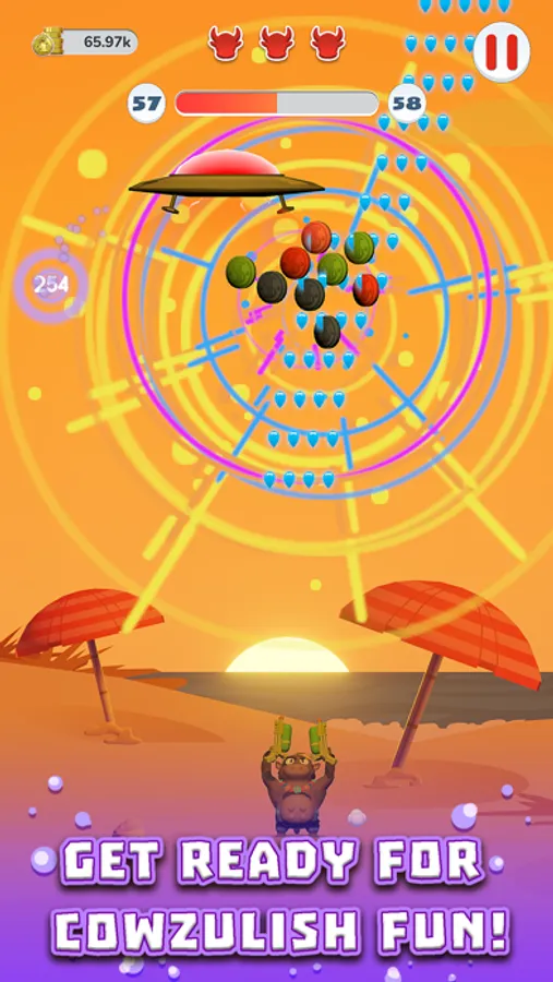 Equipe your cow amongst a series of fun and exciting skins and get ready to shoot aliens! Play in a hyper immersive environment with high quality sound effects and 3D graphics. Add more fun to the game with additional unlockable features obtainable thanks to your in-game achievements. Give your very best, challenge your friends and stay on top in leaderboards!