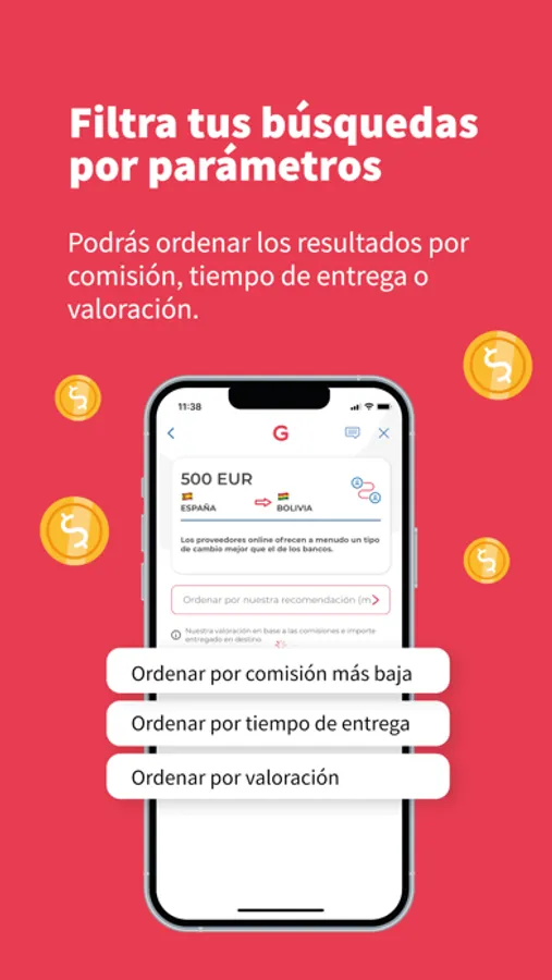 2. Selecciona una opción entre la lista de remesadoras disponibles. Puedes filtrar los resultados en función del coste o del tiempo para recibir el dinero en el país de destino.
