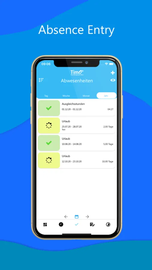 Recording of attendance and absences times. A target / actual evaluation is also available.