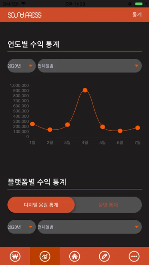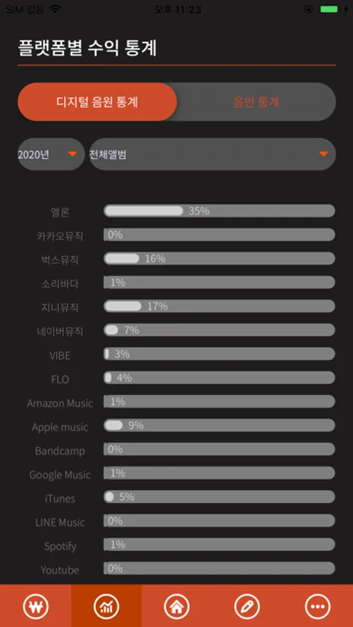 -모바일로 언제 어디서나 연도, 앨범, 플랫폼별 실시간 확인 가능한 판매 내역!