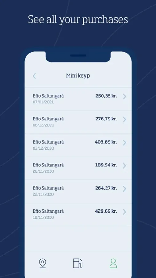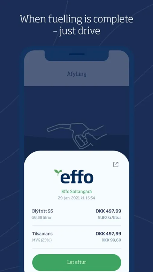 Easier and faster fueling. Open the pump in the app and start fueling immediately. When fueling is complete, you receive a receipt, and the purchase is complete.