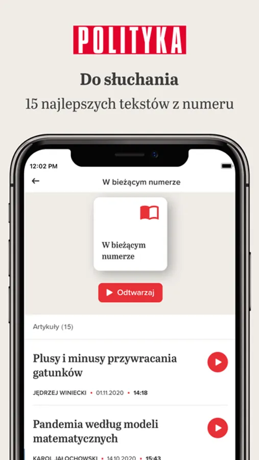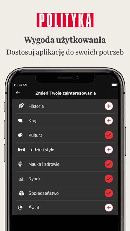Dzięki opcji wyboru ulubionych autorów i tematów – każdy czytelnik tworzy w nowej aplikacji własną, niepowtarzalną POLITYKĘ.