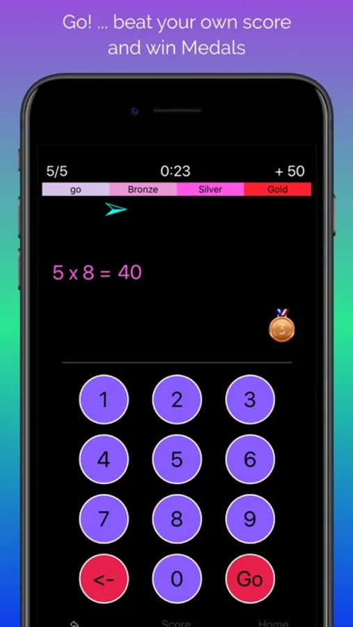 Do your best, beat your high-score and win medals… bronze, silver, gold or reach the ultime genius Einstein badge! Choose the operation you want: addition, subtraction, multiplication, division or combine any of those. The light blue arrow indicates where you stand in this race.