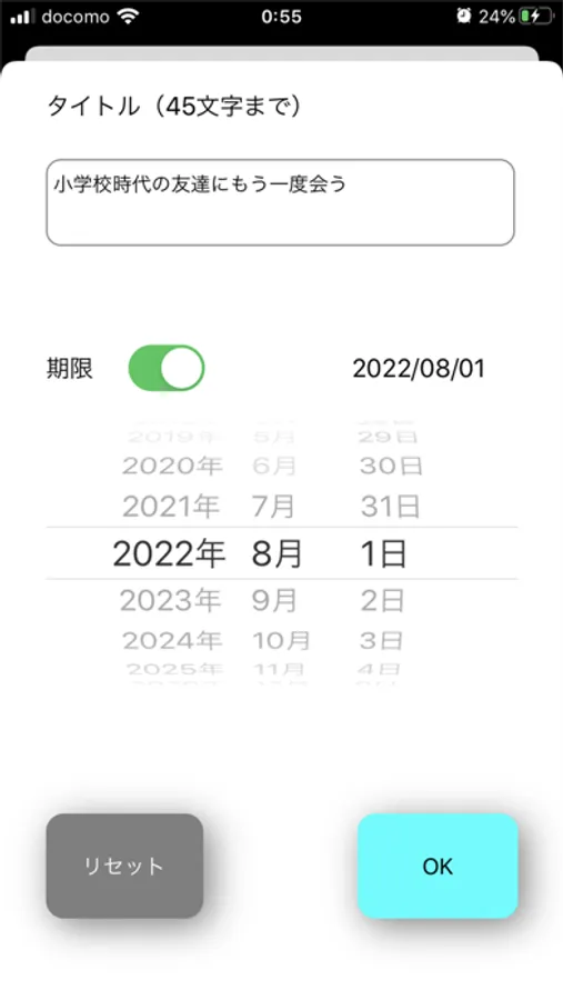 画面右上の+ボタンをタップすると、やりたいことを登録する画面が表示されます。