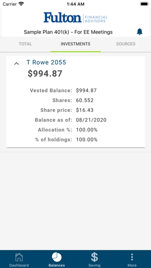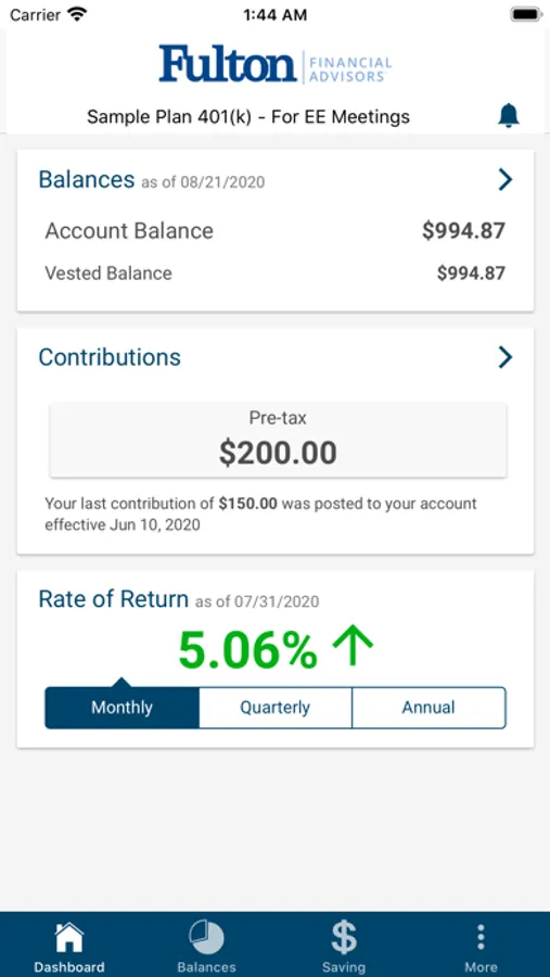 Access your retirement account from anywhere with Fulton Financial Advisors’ mobile app. With the mobile app you can check recent transactions, balances, and current investment elections. Let our mobile app help you reach your retirement goals!