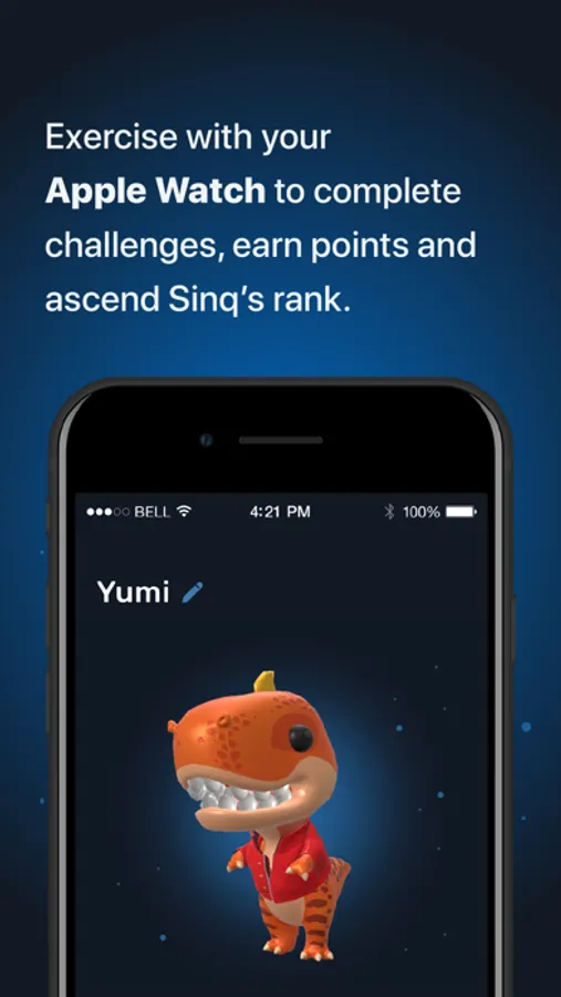 Sinq creates an environment around a Dino, which will be your virtual companion. To earn points in the app, you have to achieve goals, which can be: steps, calories, exercising minutes, or even rings from the Fitness app.