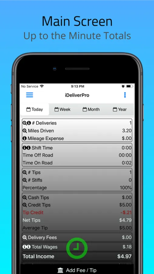 As you make your deliveries throughout the day, the main screen will update with every income category in real time.