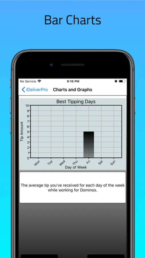 Tracking your tips is a good thing. But is that all you want to know? You may also be working for wages, sometimes dual wages, delivery fees; and of course, tips. Do you get reimbursed for mileage? Do you track your mileage for expense purposes? Do you work for dual wages and are affected by tip crediting? Would you like to know what your best tipping days and hours are so that you can adjust your work schedule accordingly? Are you an independent contractor and need to track your expenses? Do you want to be able to see your information in charts and graphs? Do you need and app that calculates Overtime and Holiday pay? Do you wish you had an app that can include photos in delivery and expense records? If you want to know what you are really earning and be on top of everything you do as a delivery professional, then iDeliverPro is your answer.
