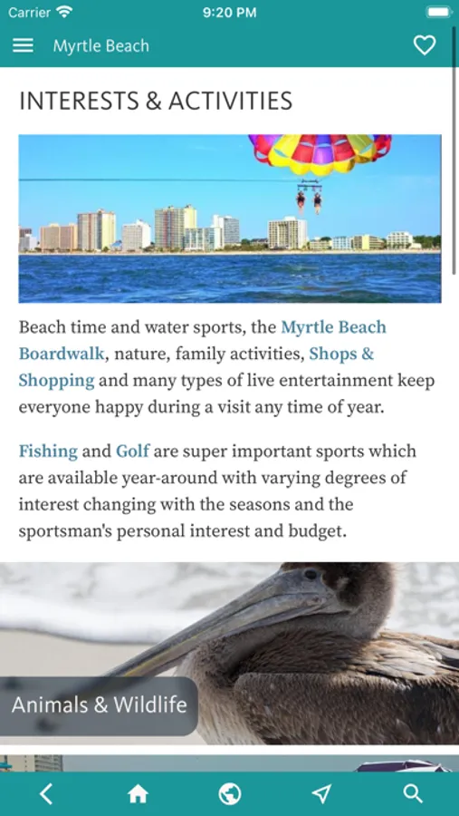 Or, if you’re a golf nut or keen to find out about local history, you might just dive straight into info on these in a INTERESTS & ACTIVITIES section. Other categories there include Wildlife, Camping, Fishing, Kids and Parks.