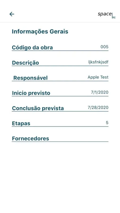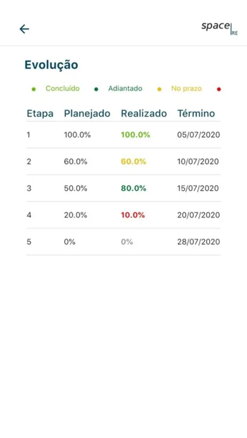 Este aplicativo proporciona aos clientes e fornecedores uma visão sobre o andamento das obras relacionadas a Space.