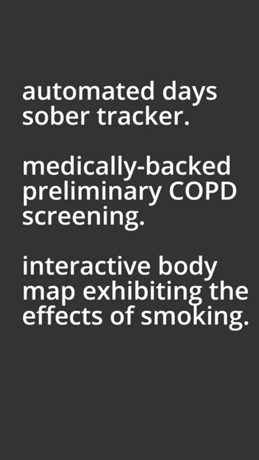 Sober Counter: The Sober Counter is a multi-faceted approach to helping those on a path to staying smoking free on their journey. First, the user is prompted to enter in the average amount of usage per week of Cigarettes, Juul Pods, or both. After that, the user will be taken to the main screen, where an auto-updating counter will tell the user how many days they have been able to stay abstinent from their smoking habit (if a user unfortunately consumes smoking products, they can easily hit the "relapse" button to start over). Additionally, the Sober Counter will also tell the user how much money they have saved in total over the course of their sober journey, as well as their expected savings of money over the course of the following month and year. This feature will allow the user to directly see the benefits of their tough fight against addiction, hopefully encouraging them to keep up their great work.