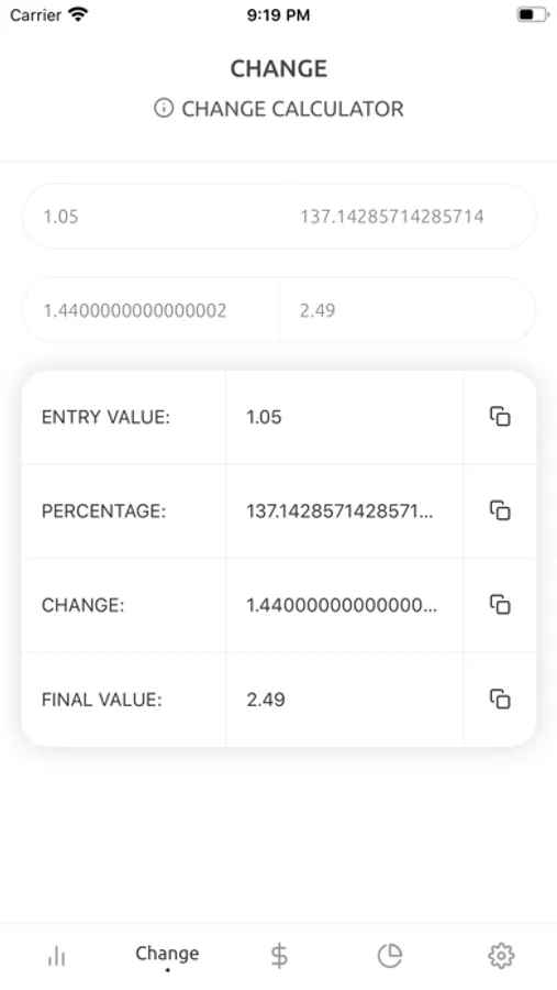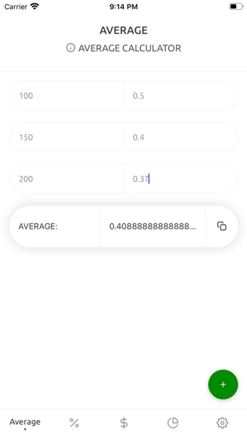 Easily calculate your average costs or average sells by entering an unlimited amount/value pairs.