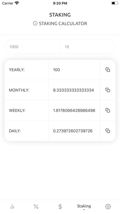 Those who are 'hodlers' will be familiar with the term. You can use this calculator to see your yearly, monthly, weekly and daily return estimate of your staking rewards. Or you can simply use this to calculate APR if you've got a savings account.