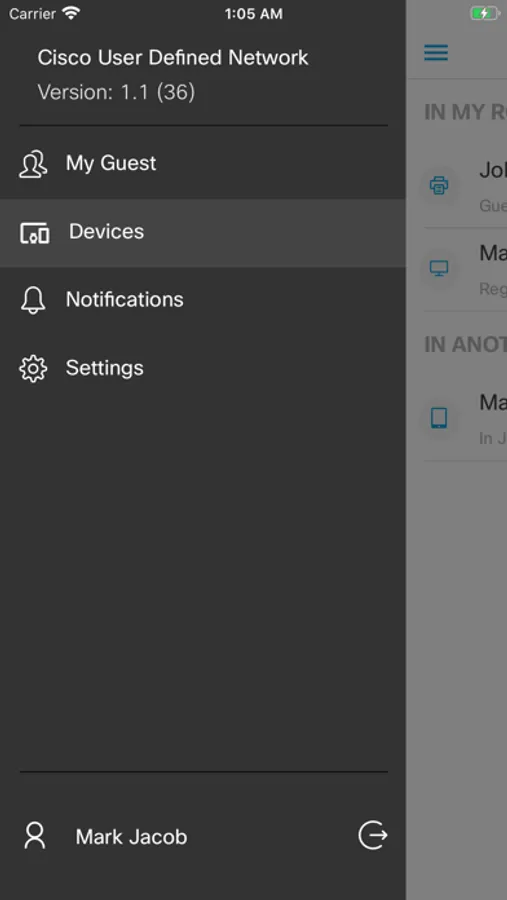 Device Sharing: The Cisco UDN app allows the user to share their devices connected to UDN with other users in same organization by inviting them to join their network. The invitation flow is as described: