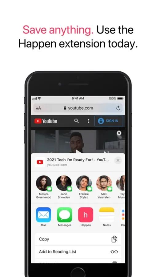 The iOS share extension and usehappen.com web bookmarklet lets you save anything with one click.