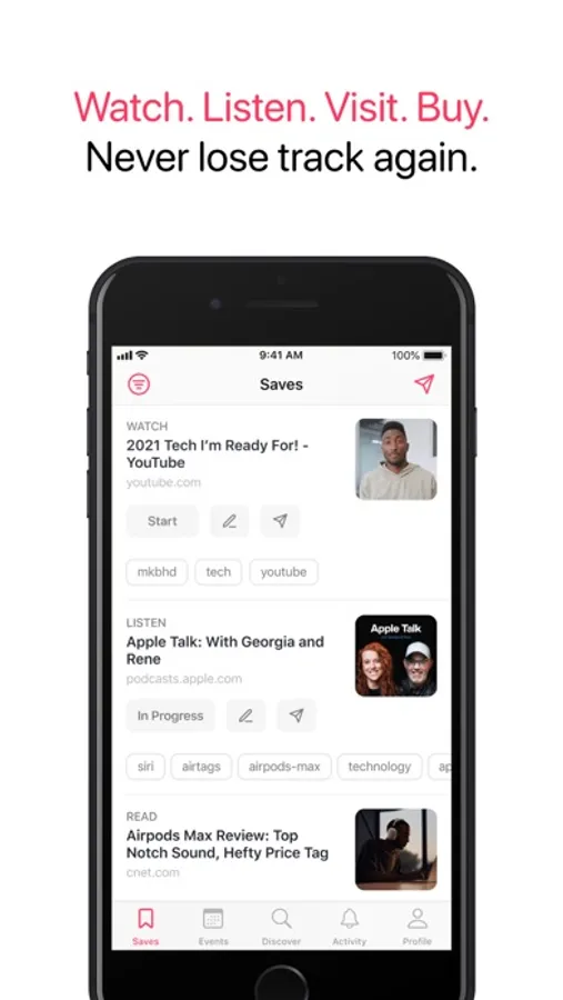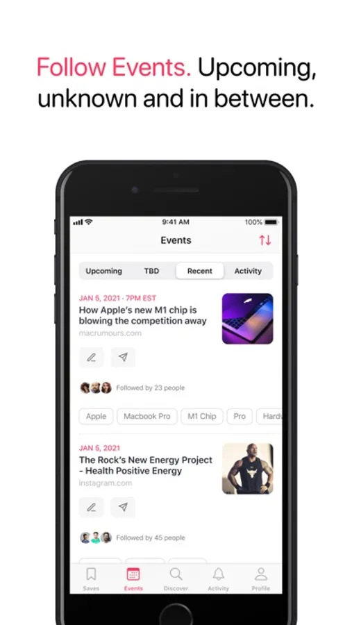 The Happen platform consists of an iOS app and website. Users can save anything and follow upcoming dates they find come across on the web and social media apps (Twitter, Instagram, Facebook, TikTok).