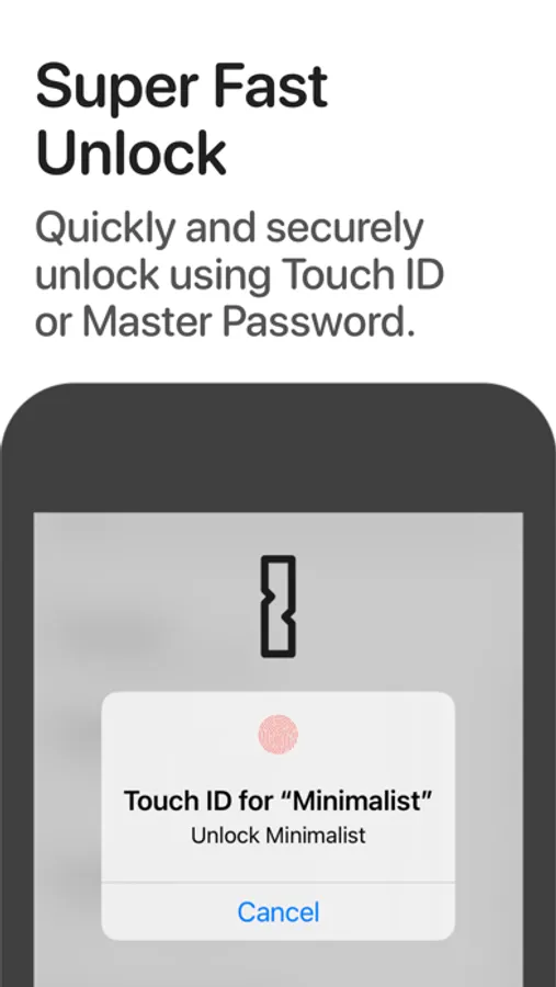 Unlock Minimalist quickly and securely using Face ID, Touch ID, or your Master Password. Learn more at https://minimalistpassword.com.