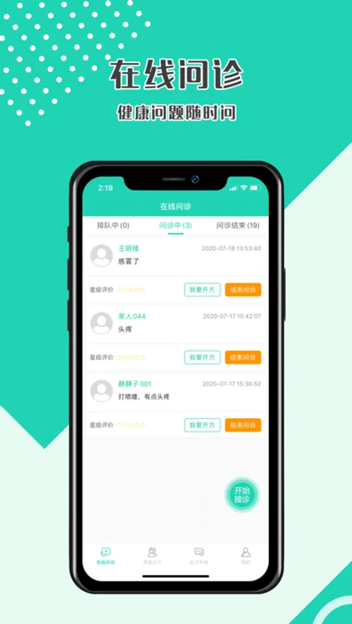 医生可以下载壹点问诊医生端手机app进入在线问诊与用户进行视频、语音沟通并根据描述为用户开具电子处方,还可以和用户进行互动解答。