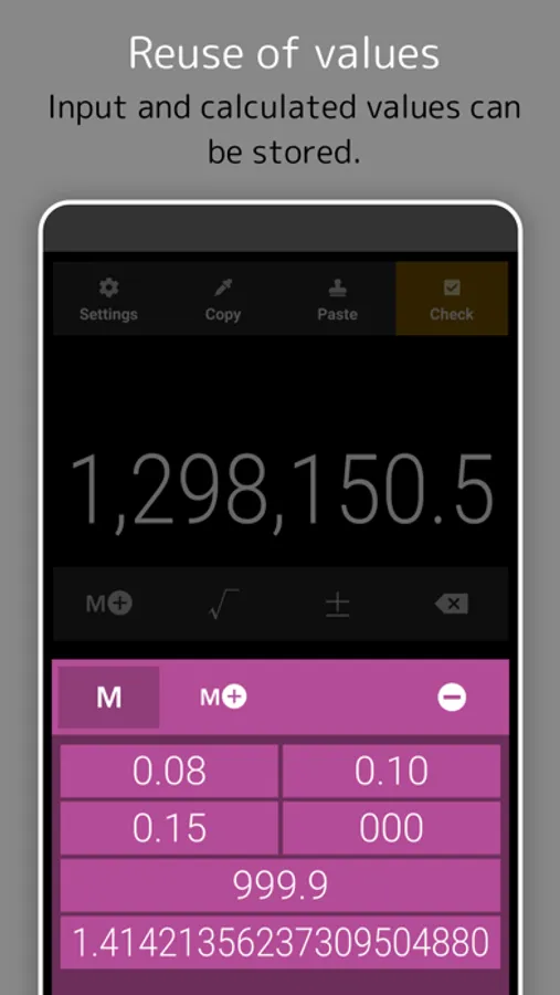 A simple, free calculator app. It provides basic calculation, value storage, and verification.