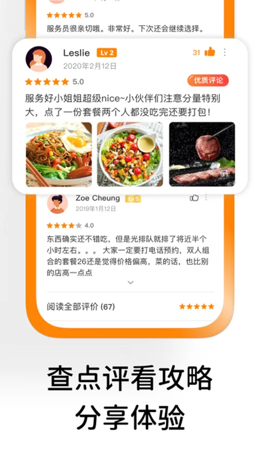 不同人群会有不同的体验,所以我们筛选掉没有帮助的信息,只提供来自华人的评价;用户可以自由点评商家,分享体验,好的点评有机会被选为优质评论获得奖励
