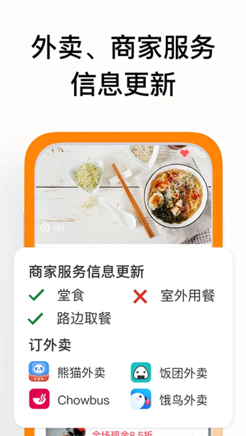 找哪儿随时更新各类商家服务信息,是否提供堂食/外卖/路边取餐/室外用餐等服务一目了然